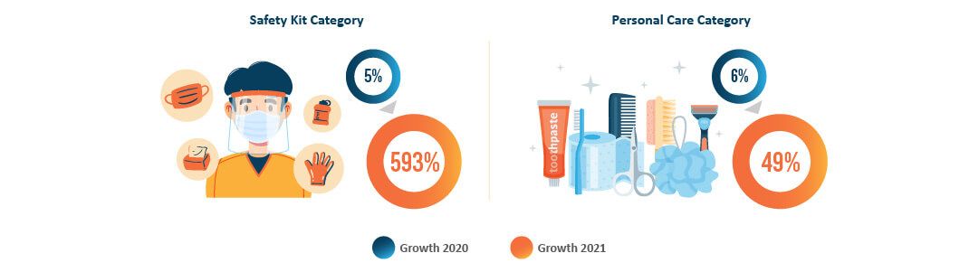 During 2021, the sales growth of masks in the safety kit category has increased aggressively (593%), because many people are getting back into their normal activities and they need to protect themselves during their outdoor mobility. In 2020, the growth in the safety kit category was only 5%, it might have been caused by production issues since there were still limited suppliers in that category and caused the scarcity condition of the mask. The growth of the personal care category was also higher this year (49%) compared to last year (6%), driven by the sales of skin care. In addition, during last year’s festive season, there was the PSBB regulation that made people have to stay at home and didn't really need safety kit & personal care products during stay at home.