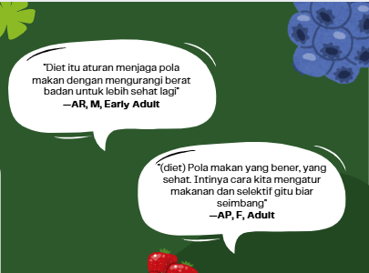 There has been a significant increase in the adoption of a healthy diet lifestyle among the Indonesian population, which has risen notably since the pandemic (2020-2021), as people have become more aware of the importance of maintaining physical health and mental wellness. This trend of embracing a healthy lifestyle continues to grow each year across nearly all age categories, including teenagers, adults, and middle-aged individuals.