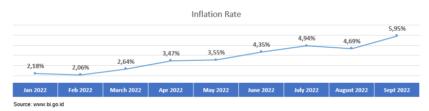 The increase in the price of fuel oil (BBM) has an impact on the increase in the price of goods. This is reflected in the inflation rate in September 2022 which annually reaches 5.95% from the realization in August 2022 of 4.69%. The inflation rate is inseparable from the impact of the increase in fuel prices which not only has an impact on the price increase in transportation fares as part of the sector that is directly affected (the first round effect), but also causes the prices of goods to rise due to the indirect impact (the second round effect).