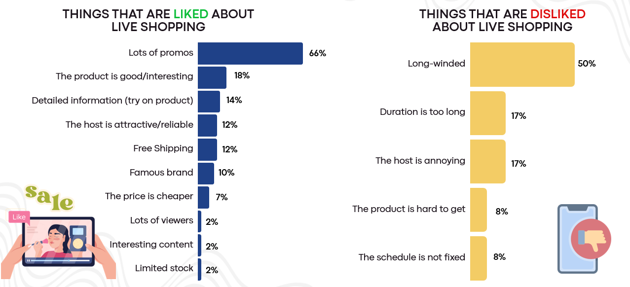 Most consumers enjoy live shopping because of the numerous promotions it offers, while one common drawback they experience is that it tends to be long-winded and not concise enough.